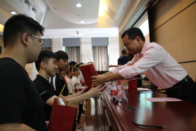 在本次新生年级大会上,学院为九位在开学期间生日的新生赠送了香甜的生日蛋糕,播放了家长和副班提前录制的祝福视频,同时设置了新生班主任为新生佩戴校徽环节,寓意新生在今后的水院学习历程中勇担爱国强校之责,争当新风尚水分子,勇做新时代弄潮儿。